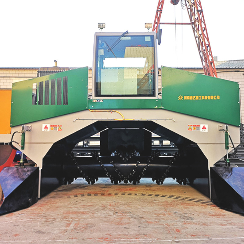 Kiedy zaczyna działać obracarka kompostu do nawozów organicznych, obejmuje pryzmę kompostu typu pasowego, a obrotowe wały tnące pod regałem mieszają i mieszają materiał.Operację można przeprowadzić nie tylko na otwartej przestrzeni, ale także w warsztacie i szklarni.Jednym z przełomowych osiągnięć technicznych obracarki kompostu z krowiego łajna jest zintegrowanie funkcji kruszenia na późniejszym etapie fermentacji materiału.Przy ciągłym odwadnianiu materiału, wały tnące mogą skutecznie rozdrabniać zbrylanie powstałe podczas fermentacji nawozu.W ten sposób produkcja nie wymaga wyposażenia w dodatkową kruszarkę, wydajność kruszenia jest znacznie poprawiona, a koszt znacznie zmniejszony.